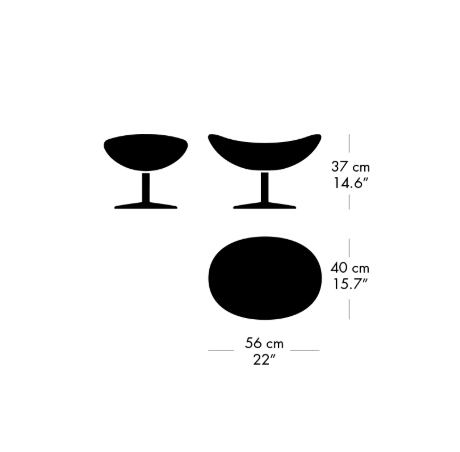 その名の通り「卵」を思わせる有機的なフォルムは、外界から包み込まれるような安心感を生み出しながら、座る人に心地よいプライベート感を与えます。柔らかな曲線に沿った背もたれは頭までしっかり支え、ゆったりと身体を預けることが可能です。オプションのスツールを組み合わせれば、さらにリラックスした時間を過ごせます。