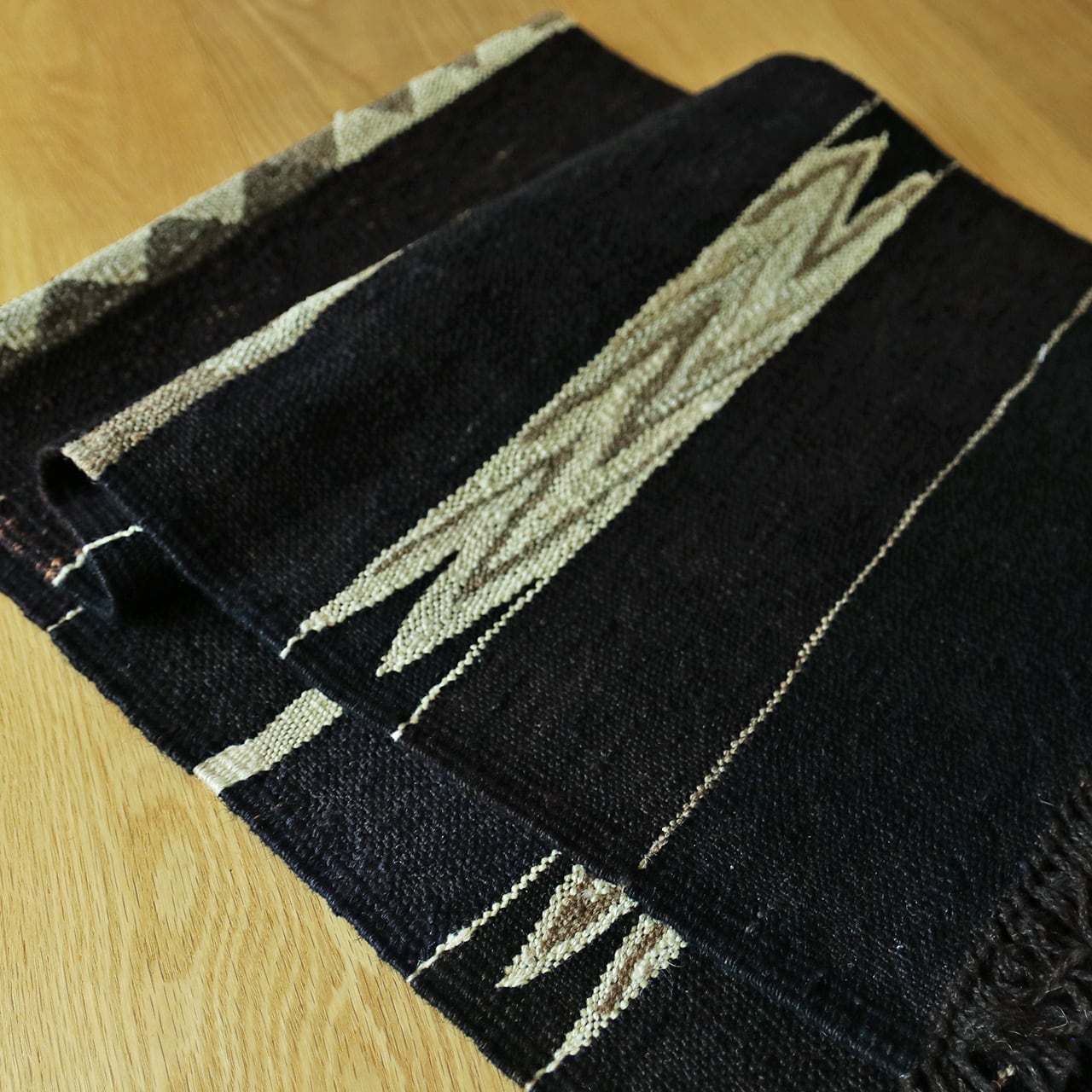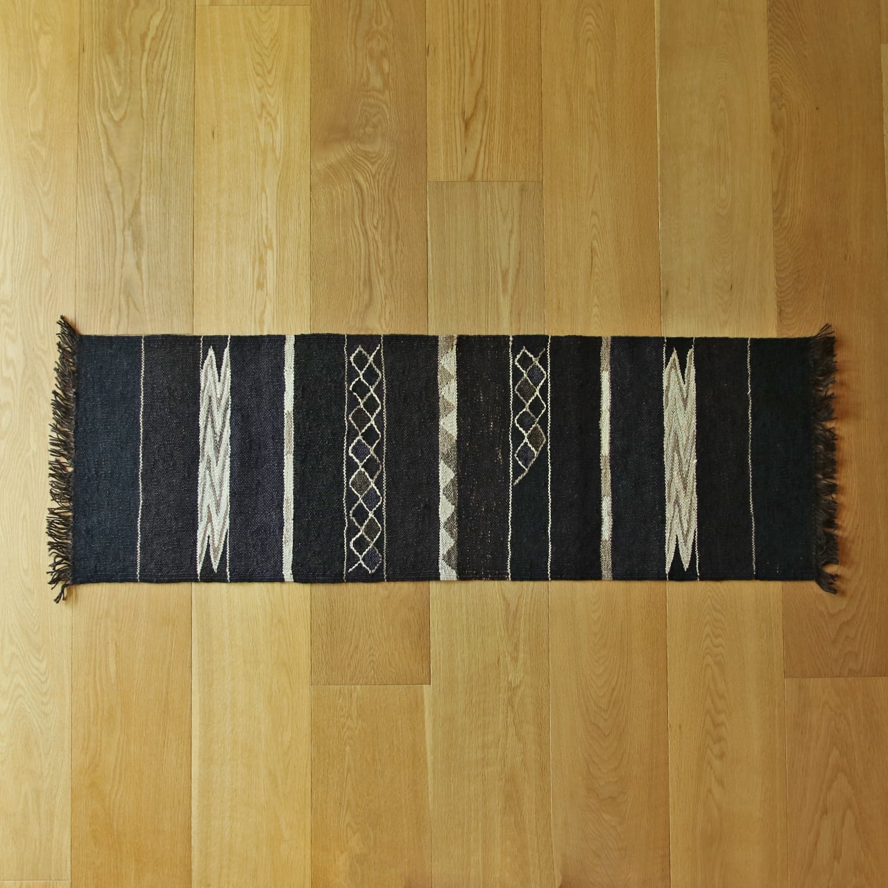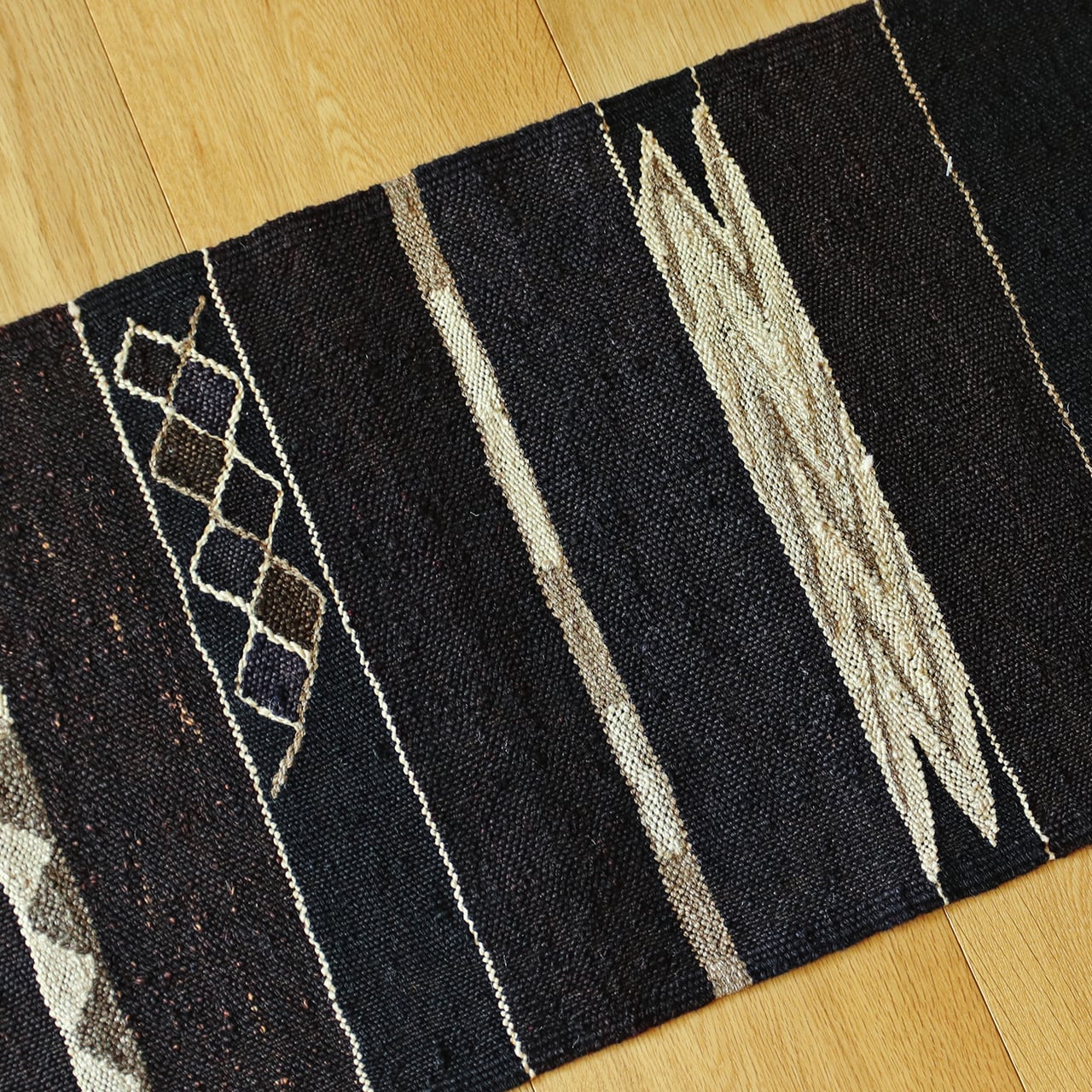 【ロゴバキリム】即納品/ブラックキリム/一点もの/敷物/ウール100%/手織り/ No,22745/119cm×40cm
