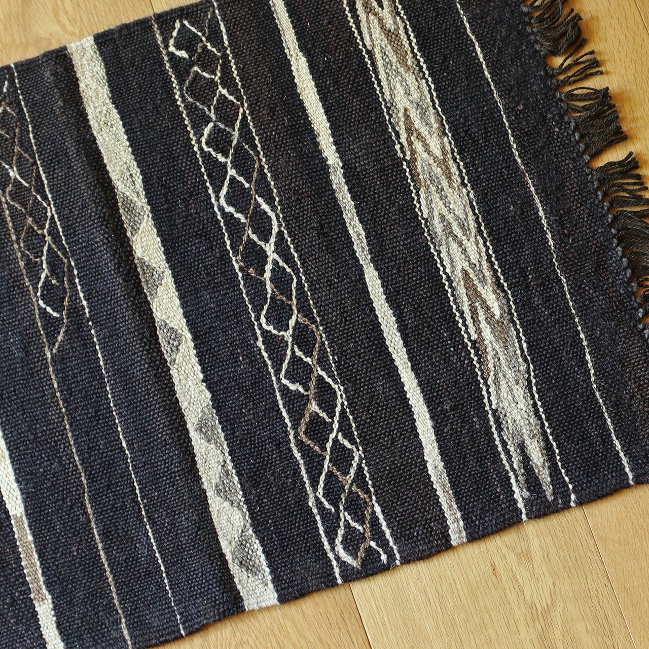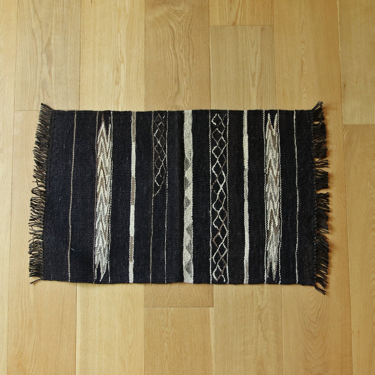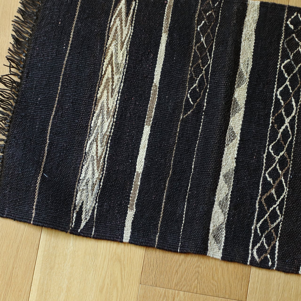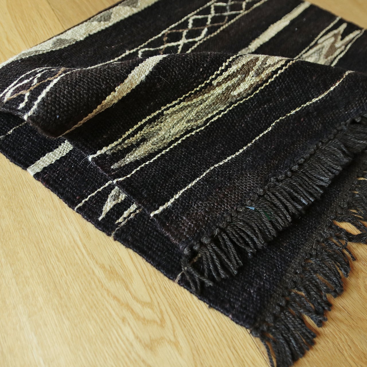 【ロゴバキリム】即納品/ブラックキリム/一点もの/敷物/ウール100%/手織り/ No.22744/75cm×49cm