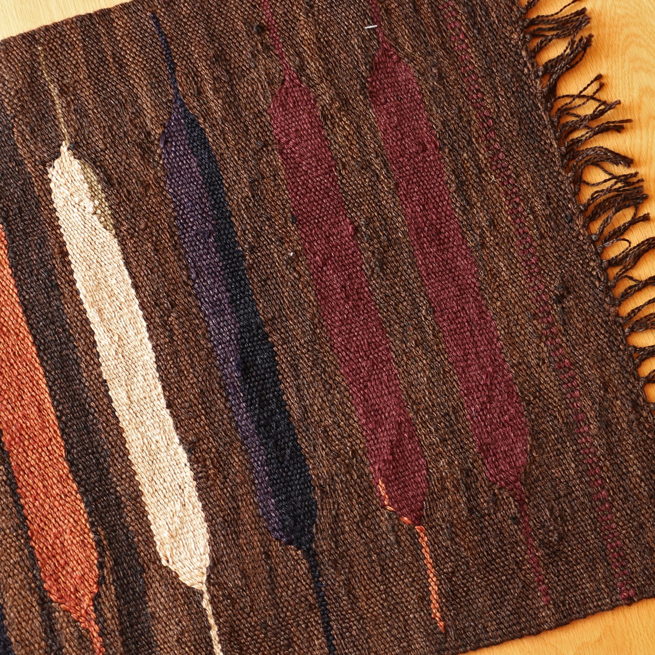 手織りによる味わい深い風合いが、お部屋のインテリアを格上げしてくれて、一枚あるだけで、空間に遊び心も生まれます。