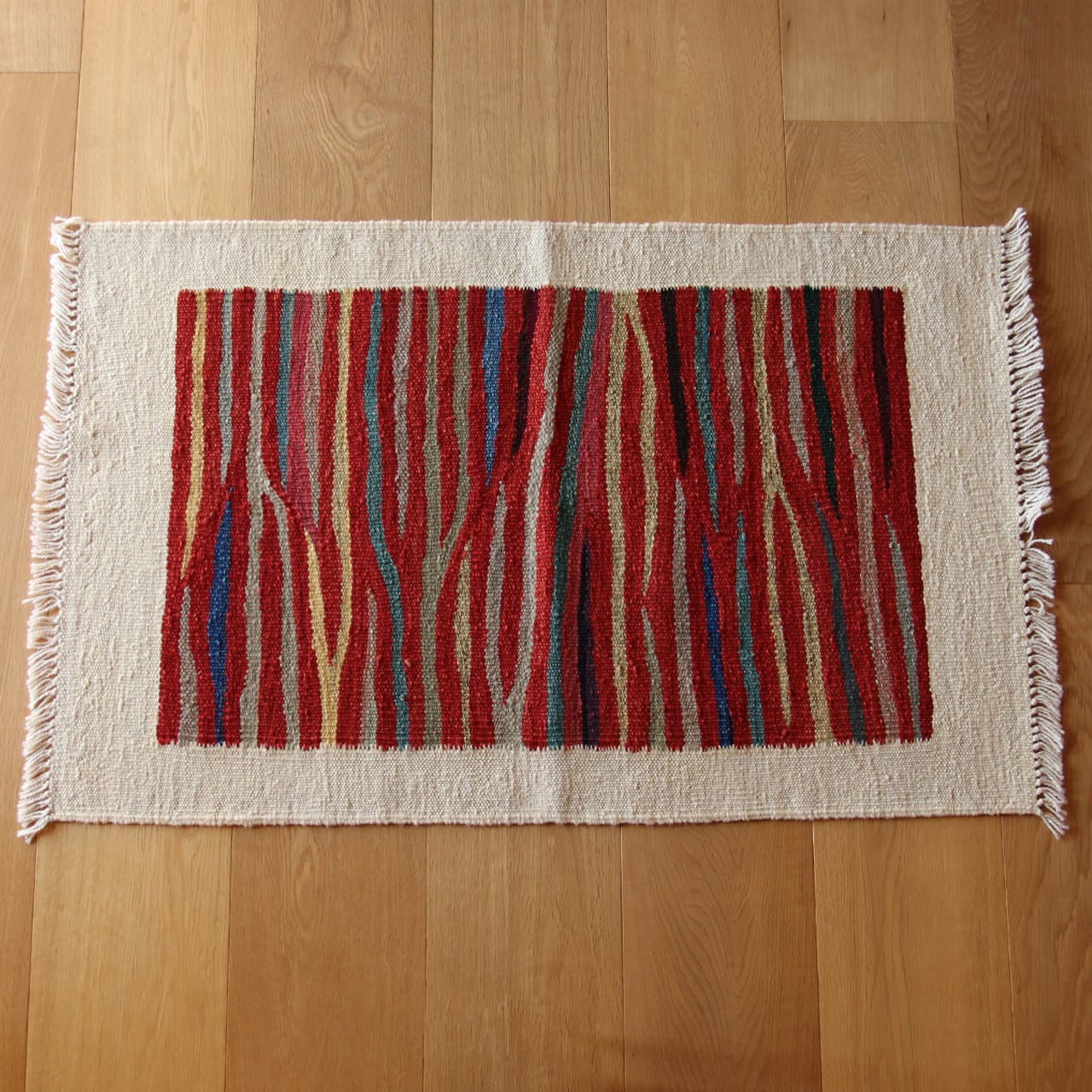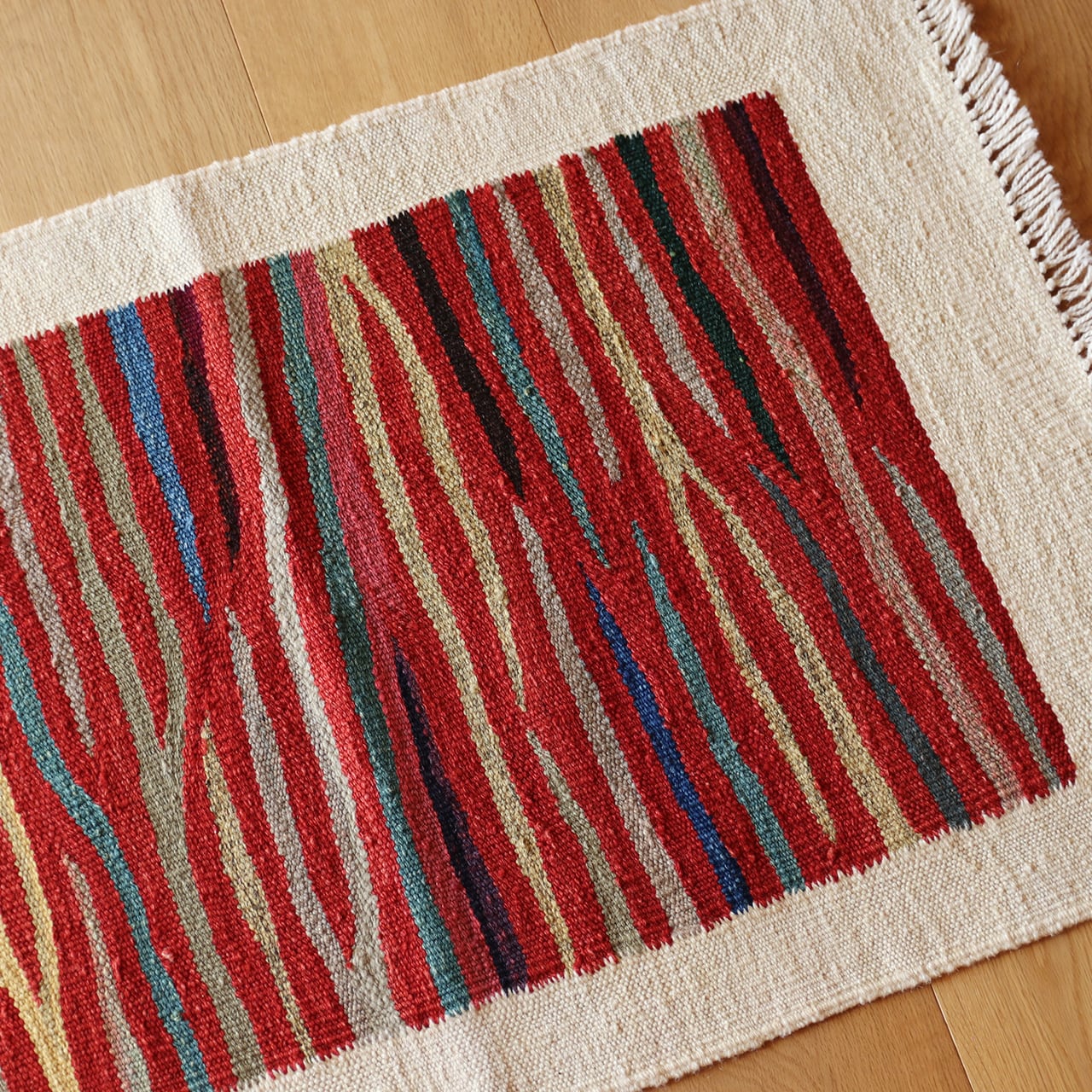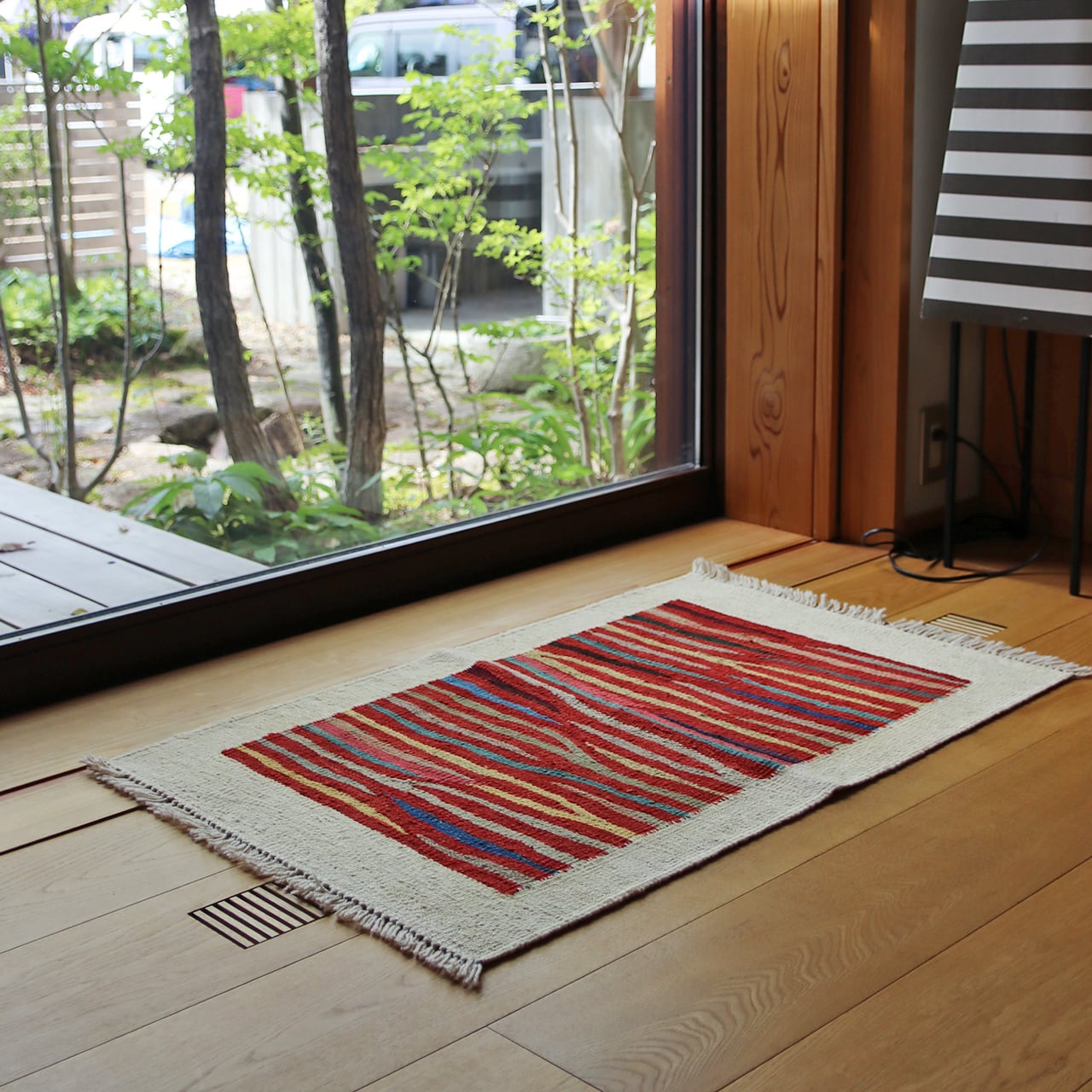 手織りによる味わい深い風合いが、お部屋のインテリアを格上げしてくれて、一枚あるだけで、空間に遊び心も生まれます。