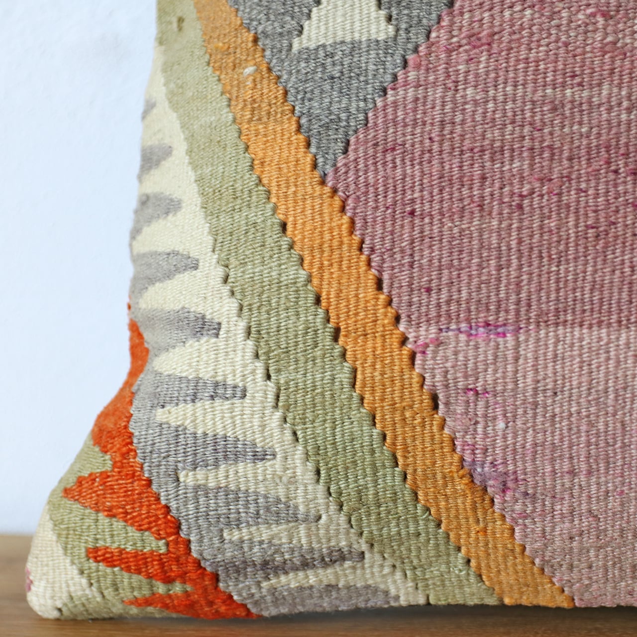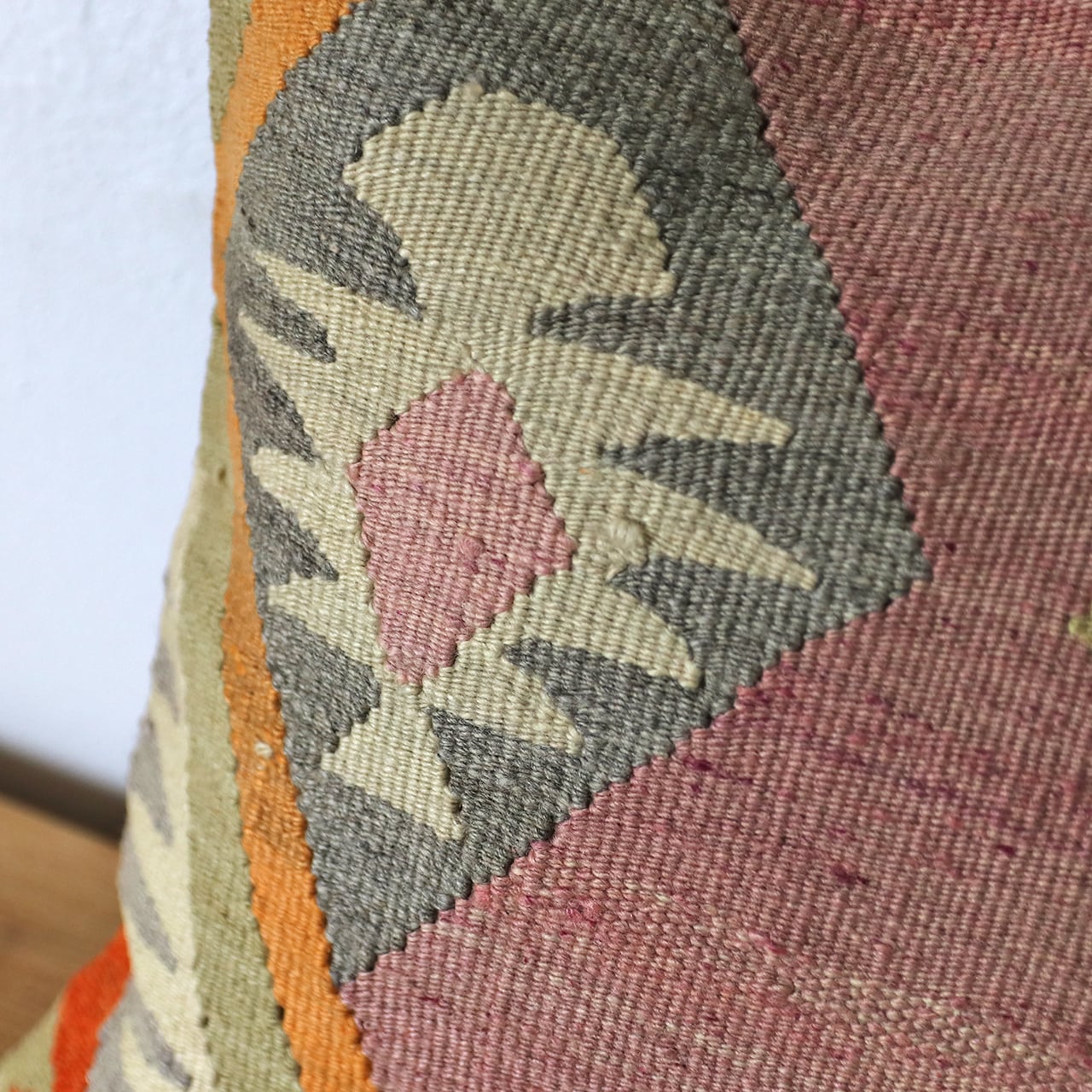 キリムクッションカバーは、トルコの遊牧民の伝統的な織物で、古くから生活道具として作られてきたオールドキリムやオールドテキスタイルをクッションカバーにリメイクしてクッションカバーに仕立て直したものです。