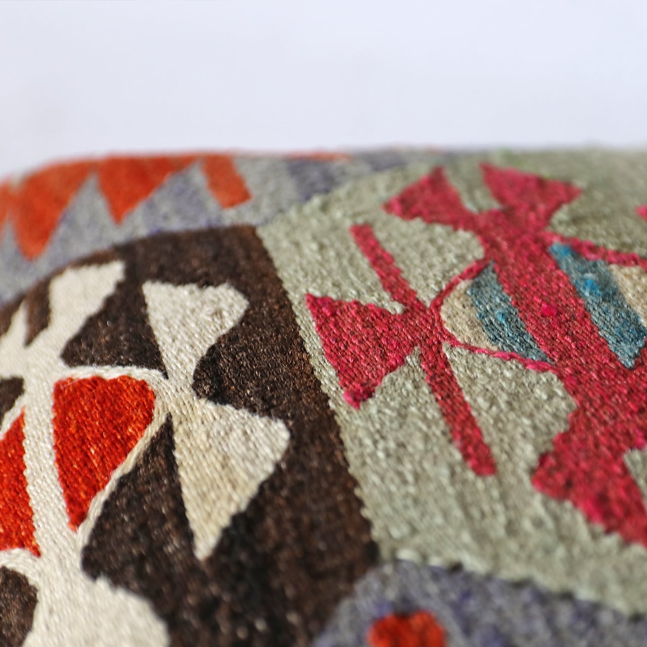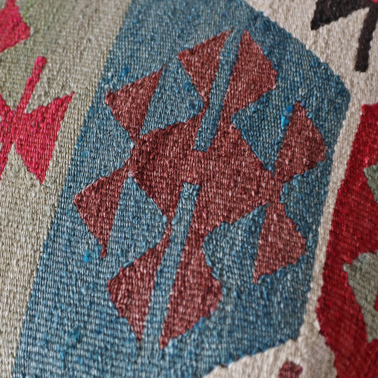 キリムクッションカバーは、トルコの遊牧民の伝統的な織物で、古くから生活道具として作られてきたオールドキリムやオールドテキスタイルをクッションカバーにリメイクしてクッションカバーに仕立て直したものです。