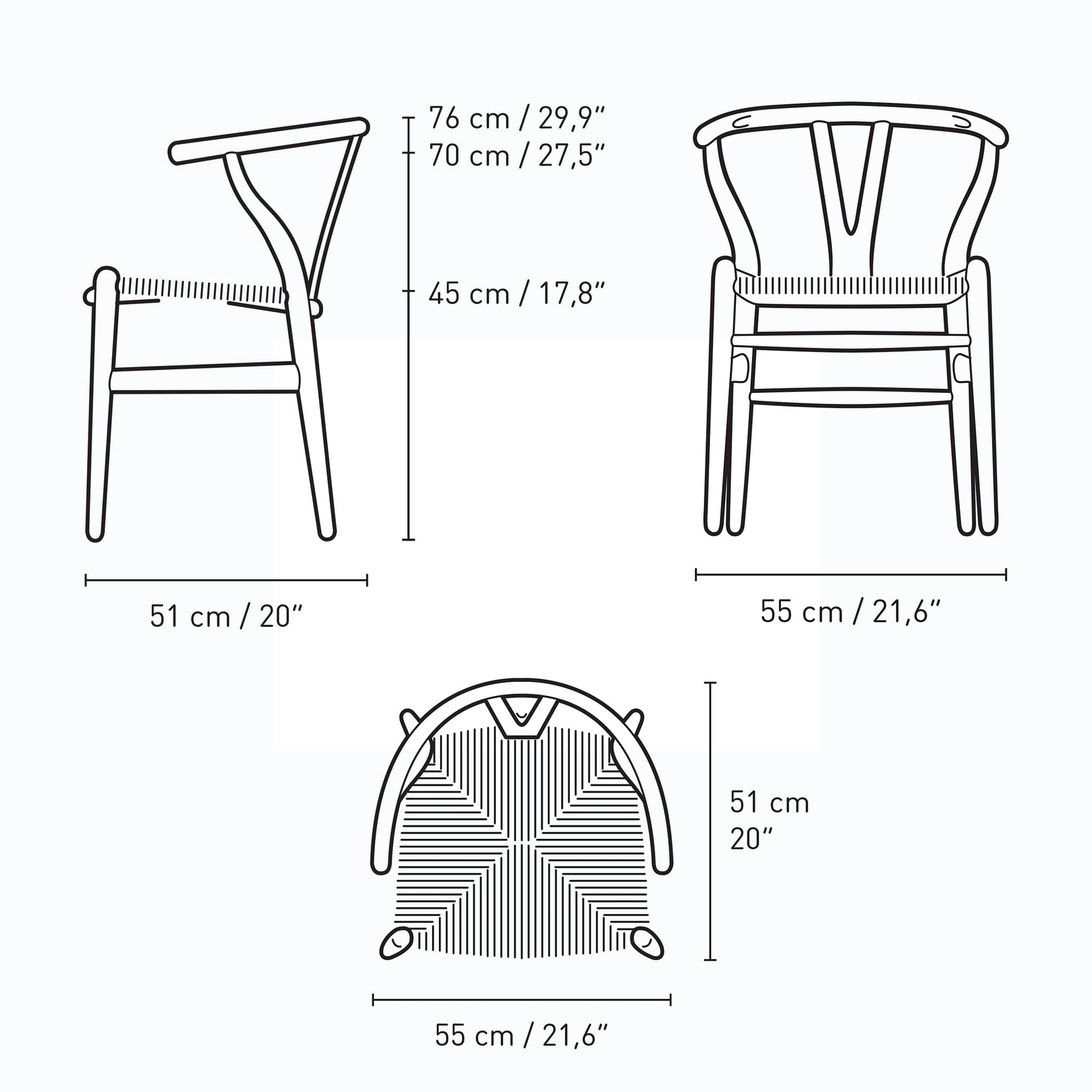 CH24(Yチェア)は、バックレストとアームレストを同じ一本の木材で作ることで、家具デザインに革新をもたらしました。スチームによる曲げ加工のバックフレームを安定させ、その快適性を最大限に引き出すために、ウェグナーは有名なYチェアの名前の由来となった、特徴的なY字型のバックレストを開発しました。また、レザー、ファブリック、木材など、椅子の座面用に伝統的に使用されてきた材料が不足していた戦後のこの時期、ウェグナーはペーパーコードを編み上げて座面とすることにしました。そしてペーパーコードを採用して数年が経った頃には、その外観と品質を非常に好むようになり、こうして元はその場凌ぎの解決策だったものが、お気に入りの素材となったのです。