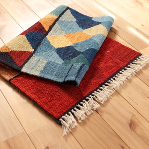 手織りによる味わい深い風合いが、お部屋のインテリアを格上げしてくれて、一枚あるだけで、空間に遊び心も生まれます。