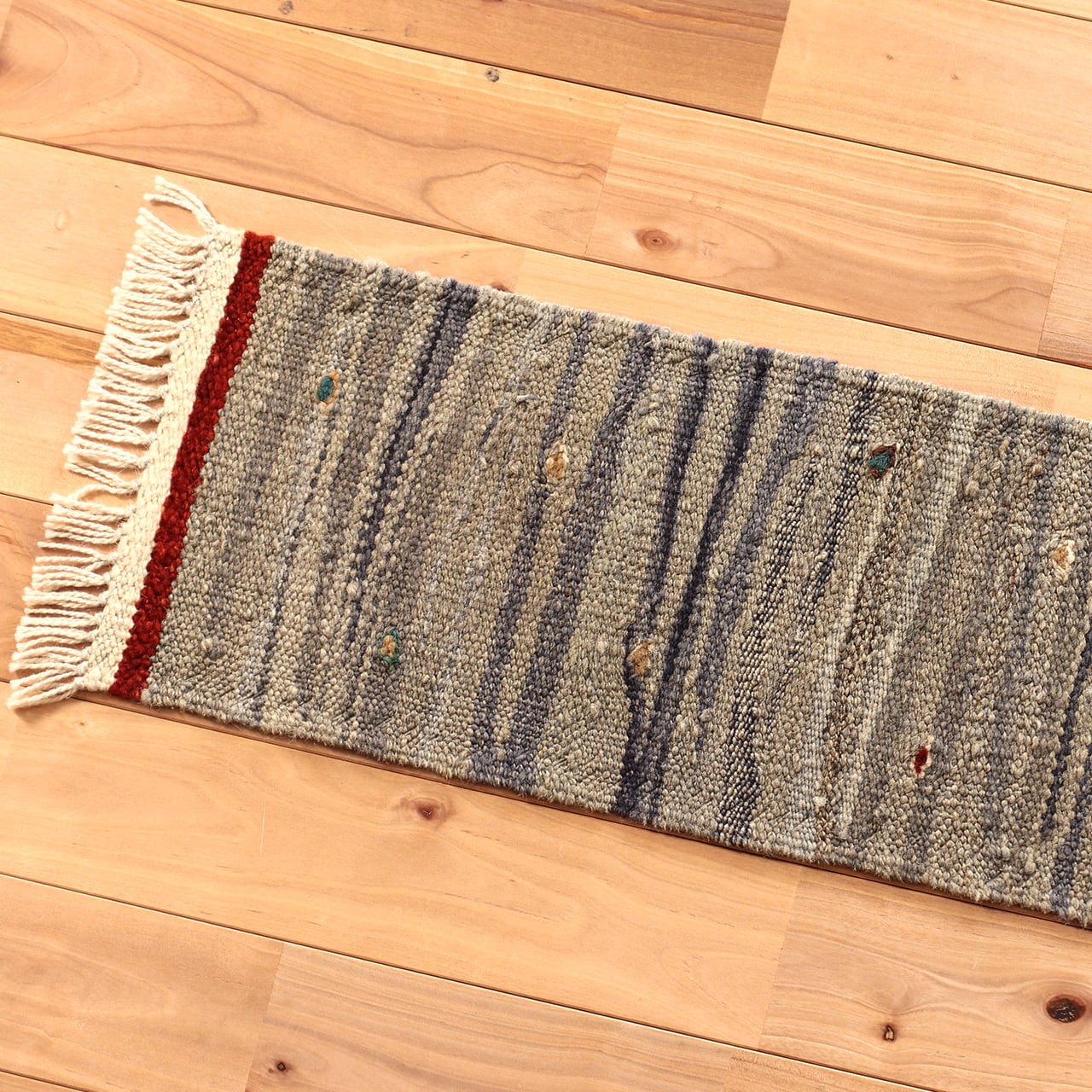 【赤のラインがピリリと効いた、洗練された石染めのミニキリム】