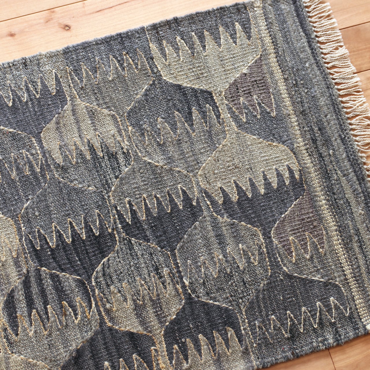 モノトーンで目を引く文様が、現代アートのような「ロゴバキリム」です。