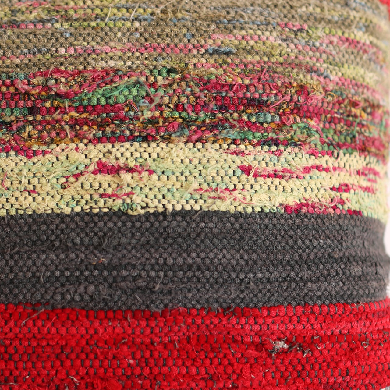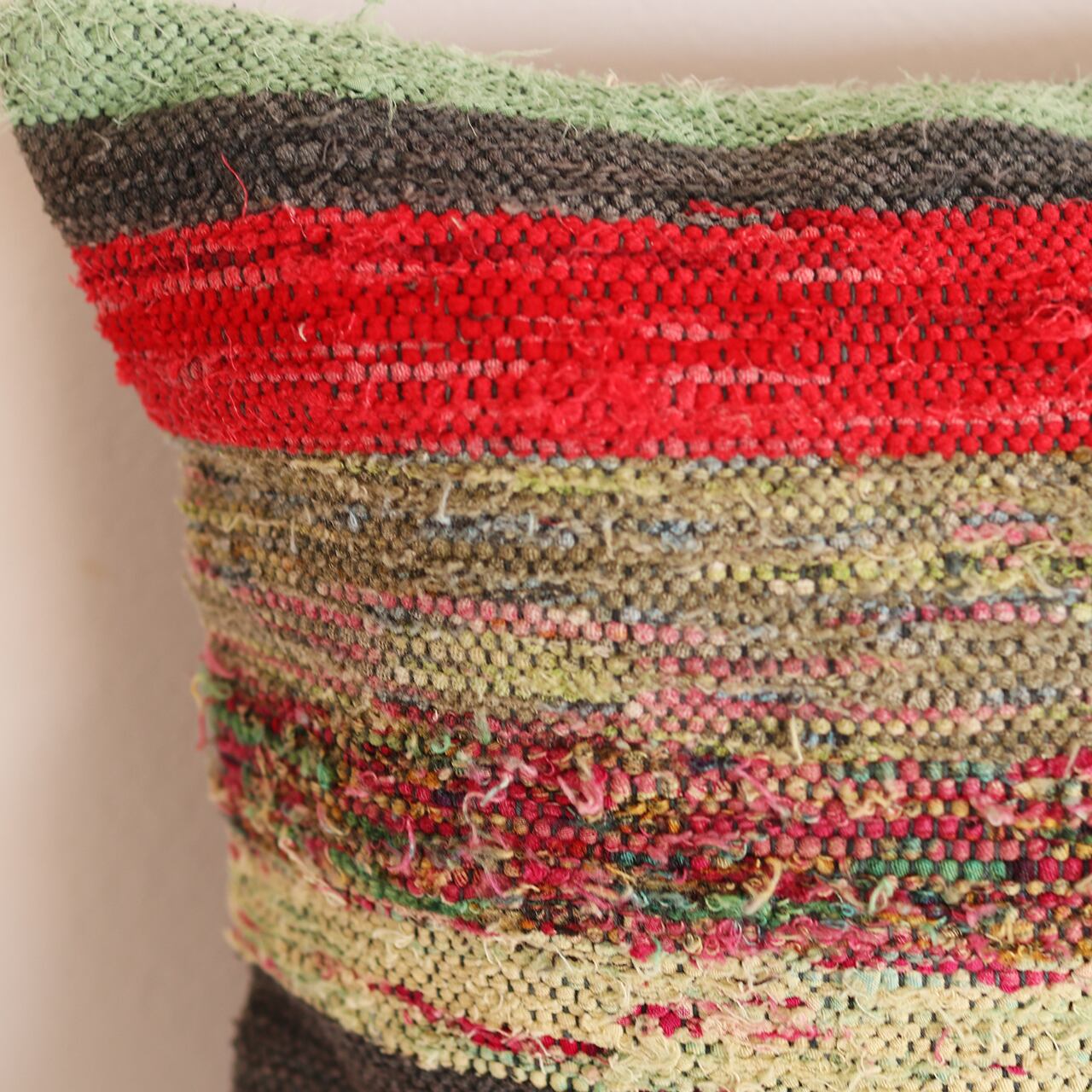 それらを細かく裂き、再び丁寧に織り上げる「裂き織り」の技法で仕上げられたクッションカバーです。