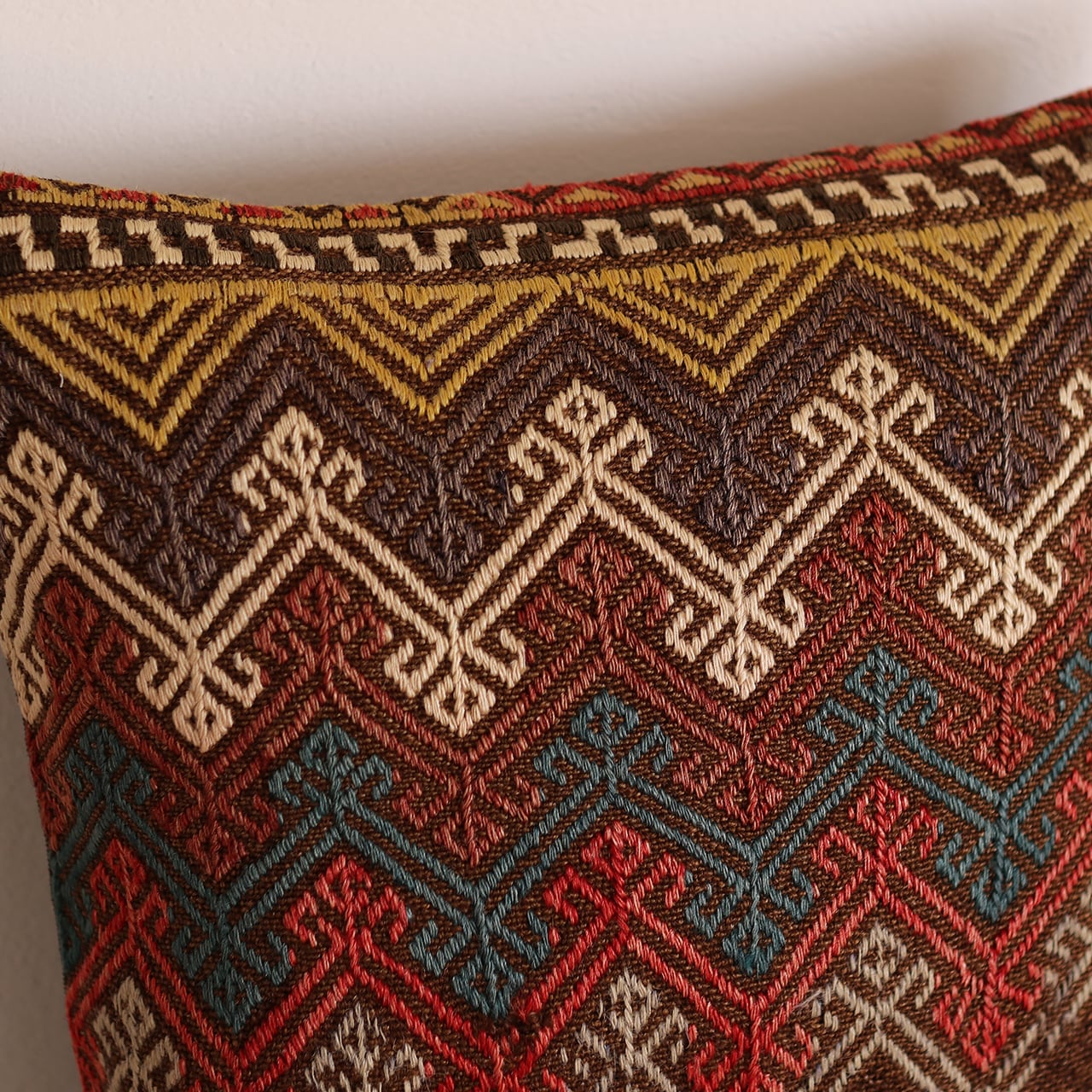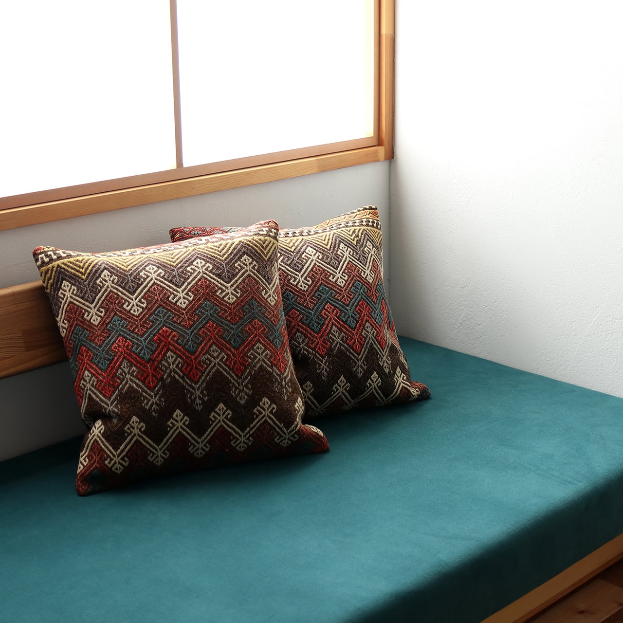 トルコの遊牧民によって丁寧に織り上げられたオールドキリムを贅沢にリメイクした、世界にたった一つのクッションカバーです。