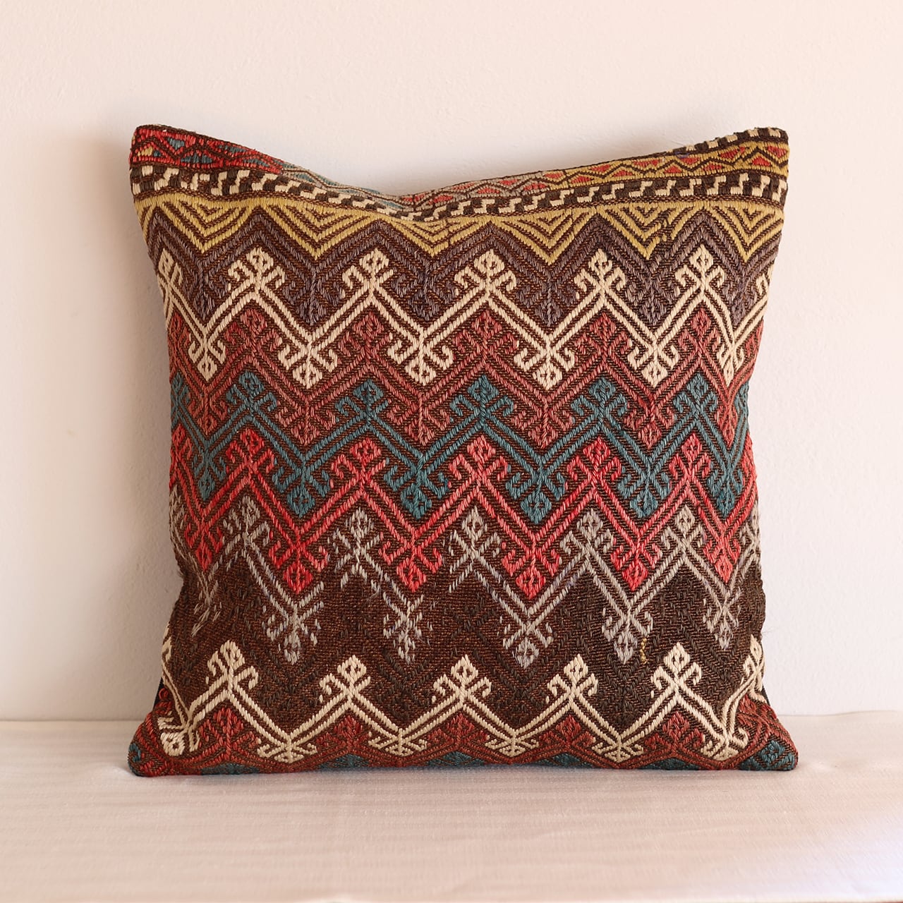 トルコの遊牧民によって丁寧に織り上げられたオールドキリムを贅沢にリメイクした、世界にたった一つのクッションカバーです。