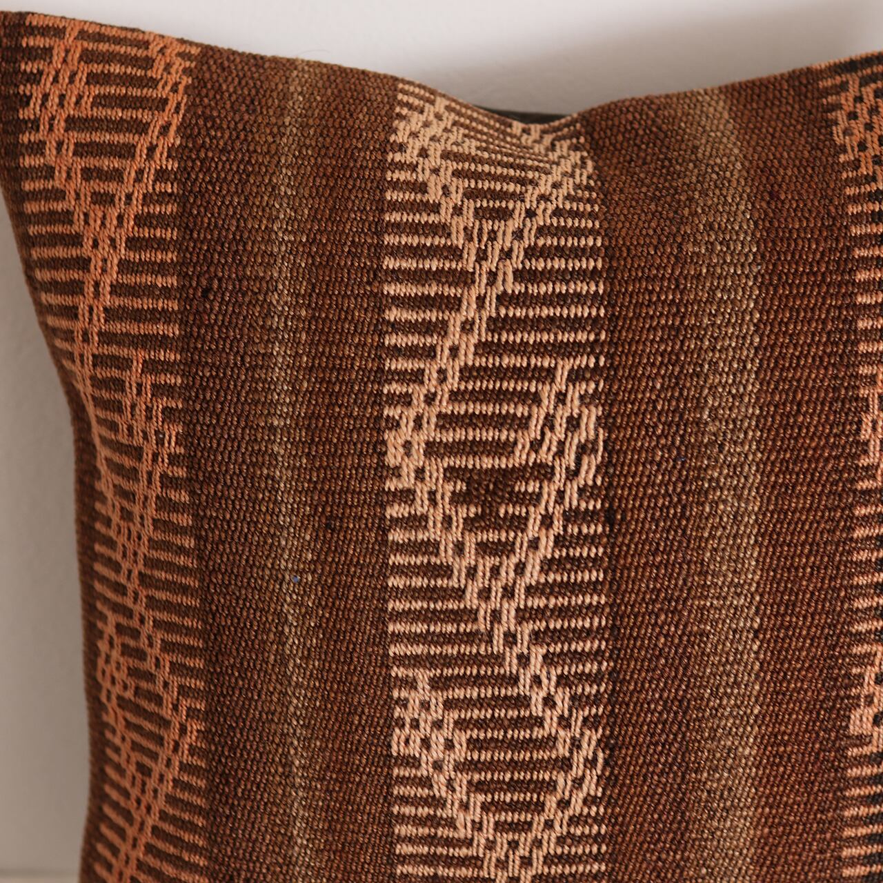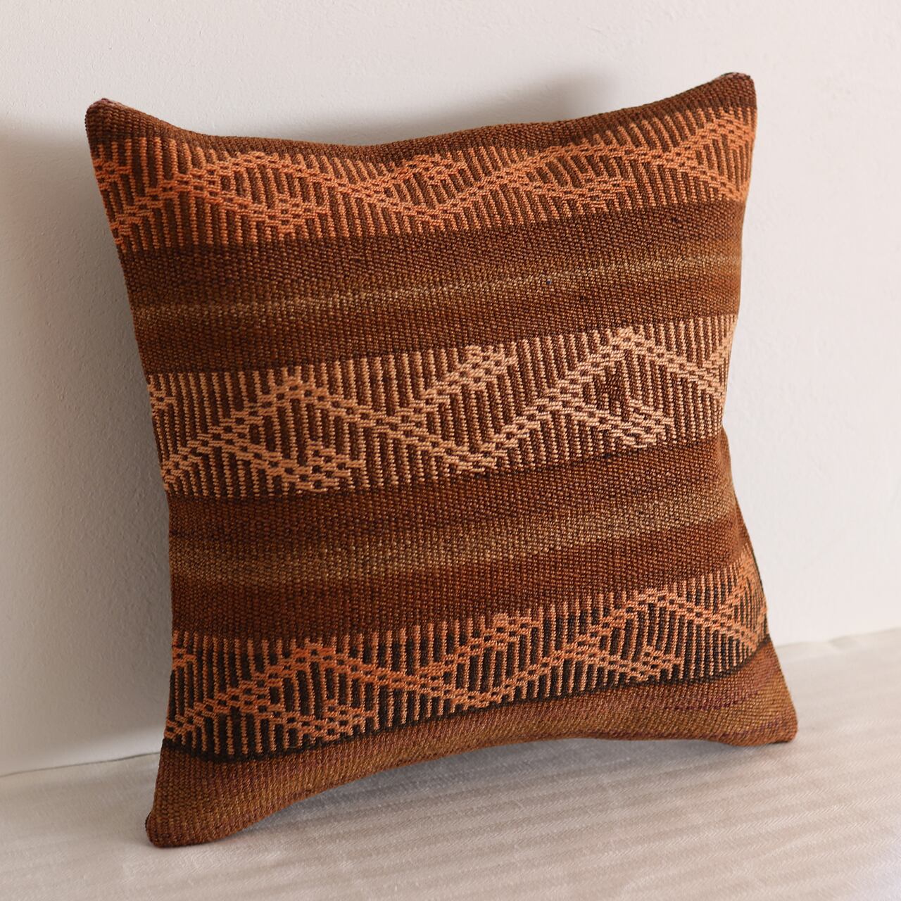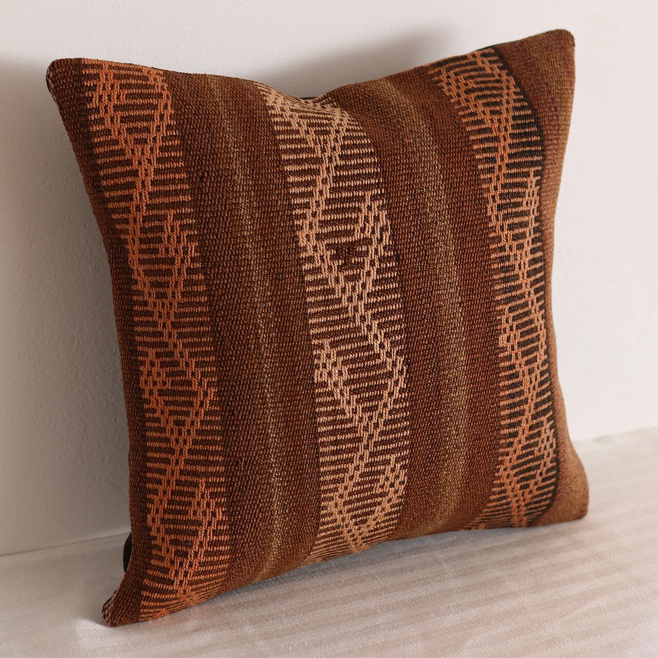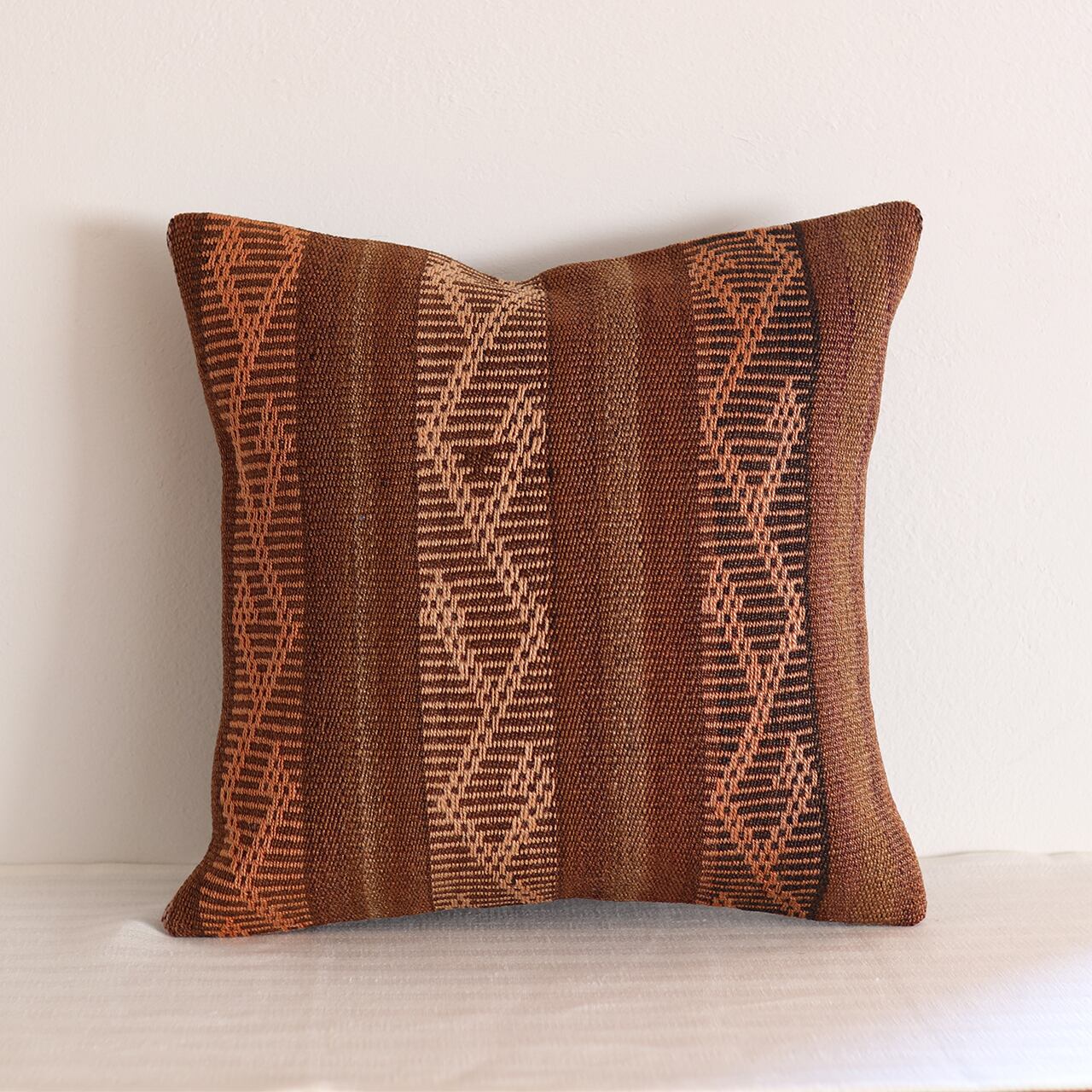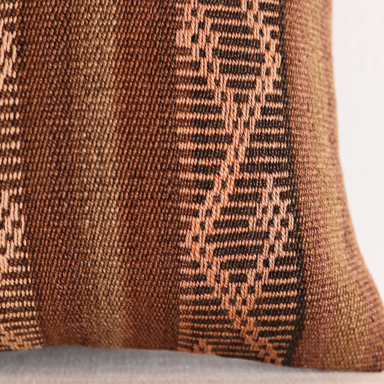 ブラウンをメインとした落ち着きある配色。どんな色のソファやベッドリネンとも相性が良く、置くだけでお部屋の質感をワンランク高めてくれます。