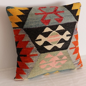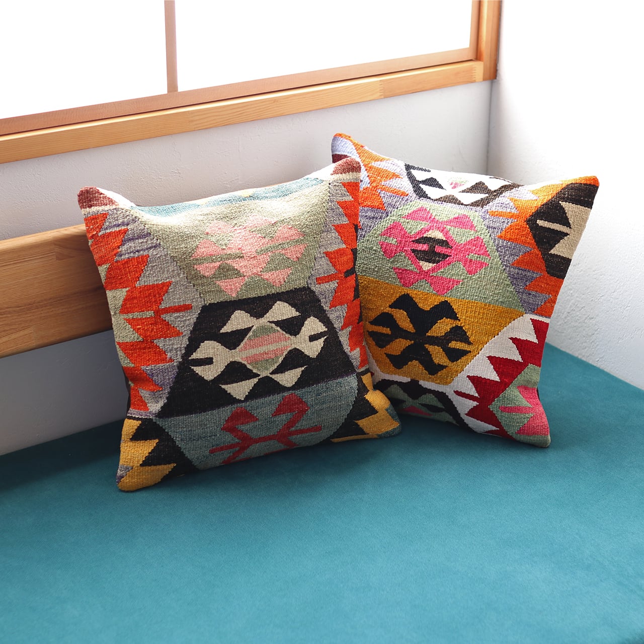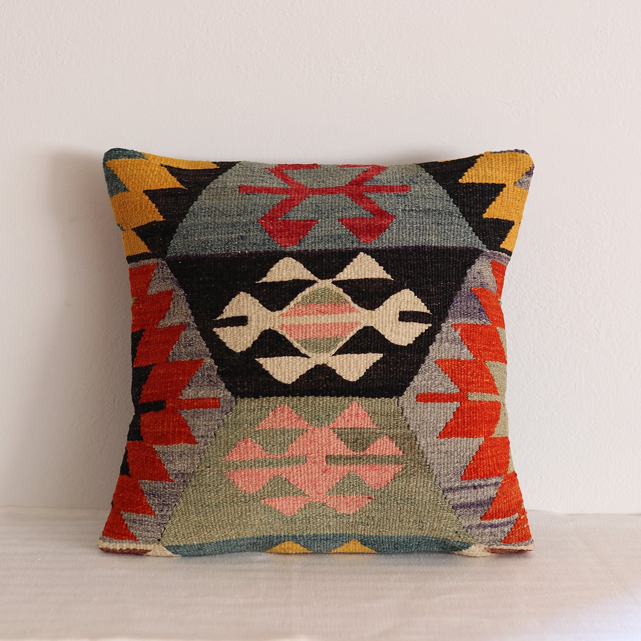 【即納品】オールドキリム・クッションカバー|ヴィンテージの色彩・1点もの(40×40cm)C-15528