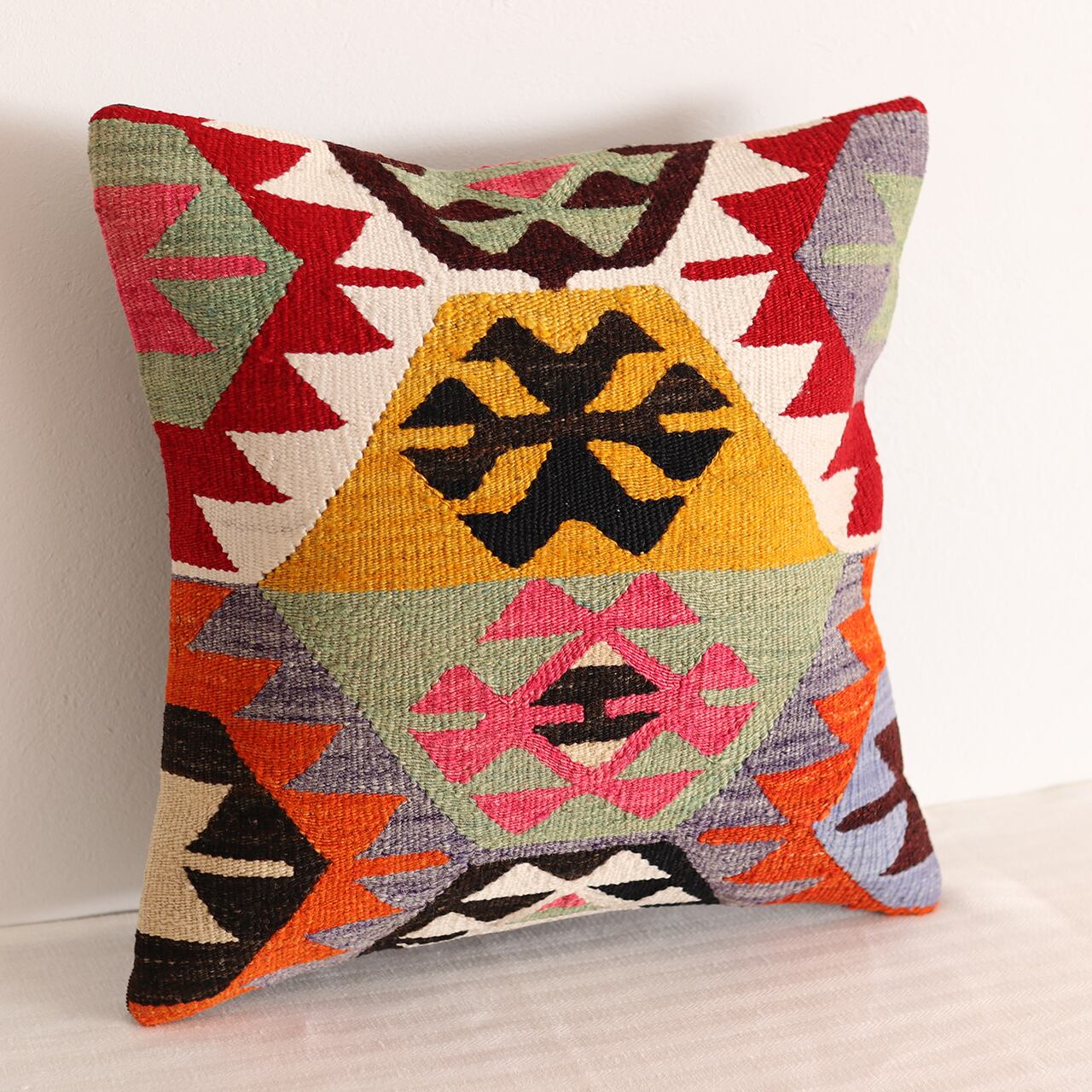 【即納品】オールドキリム・クッションカバー|ヴィンテージの色彩・1点もの(40×40cm)C-15767