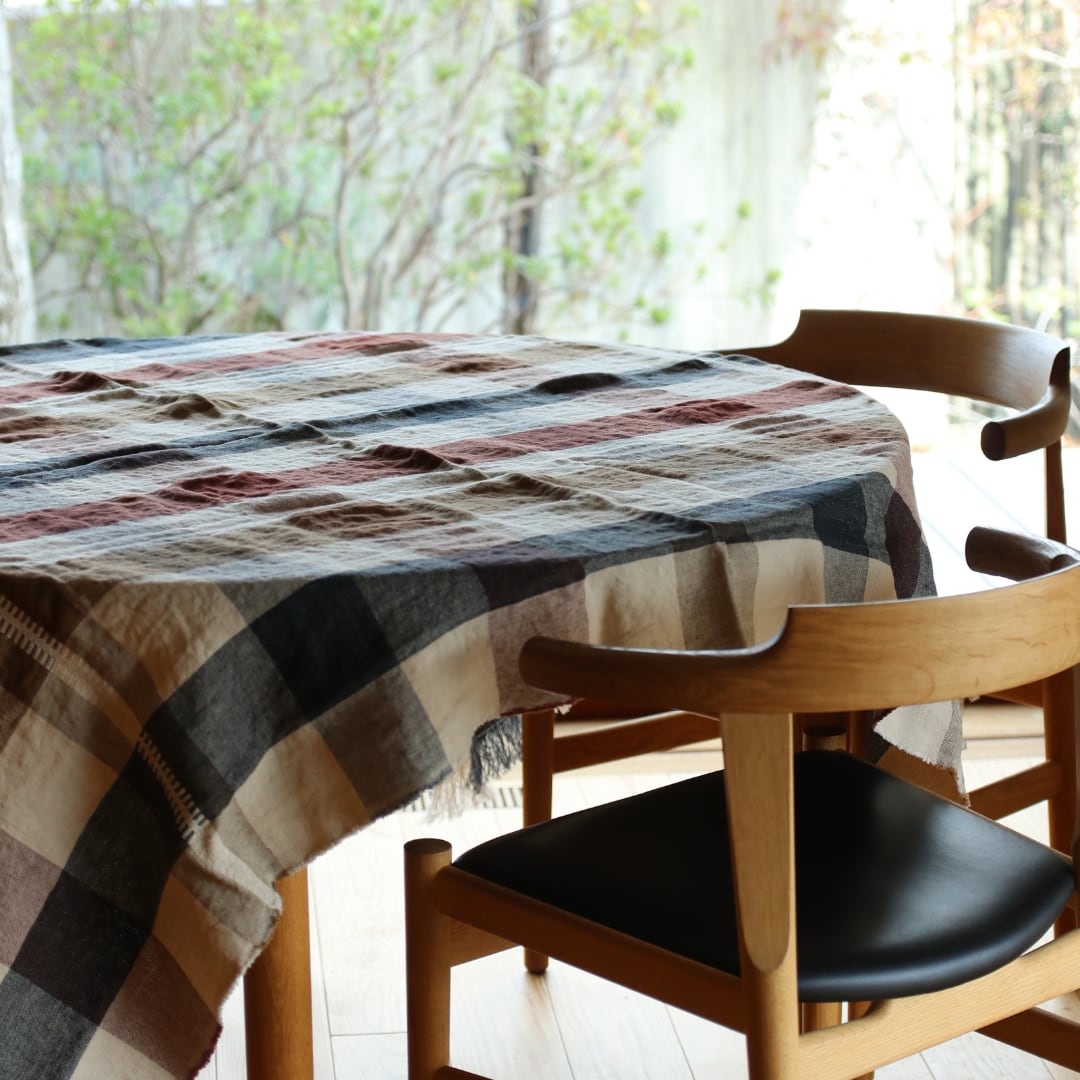 リネンは日々使うことで柔らかくなり、味わいを増していく特性があります。このテーブルクロスも、シャープなラインとこだわりのカラーが、モダンながらも温かみのある印象を与えます。140x180cmというサイズ感は、家族や友人との集まりにぴったりです。