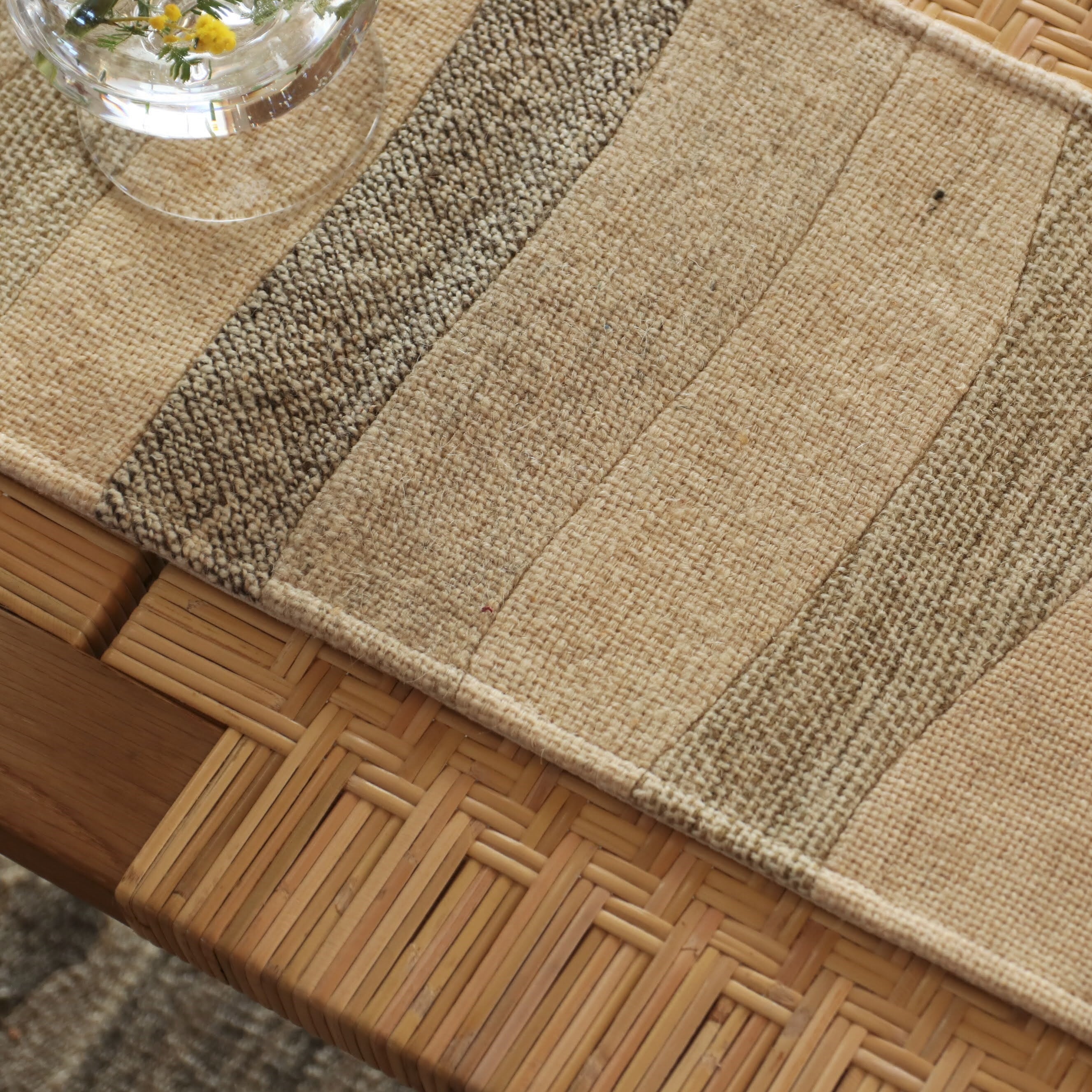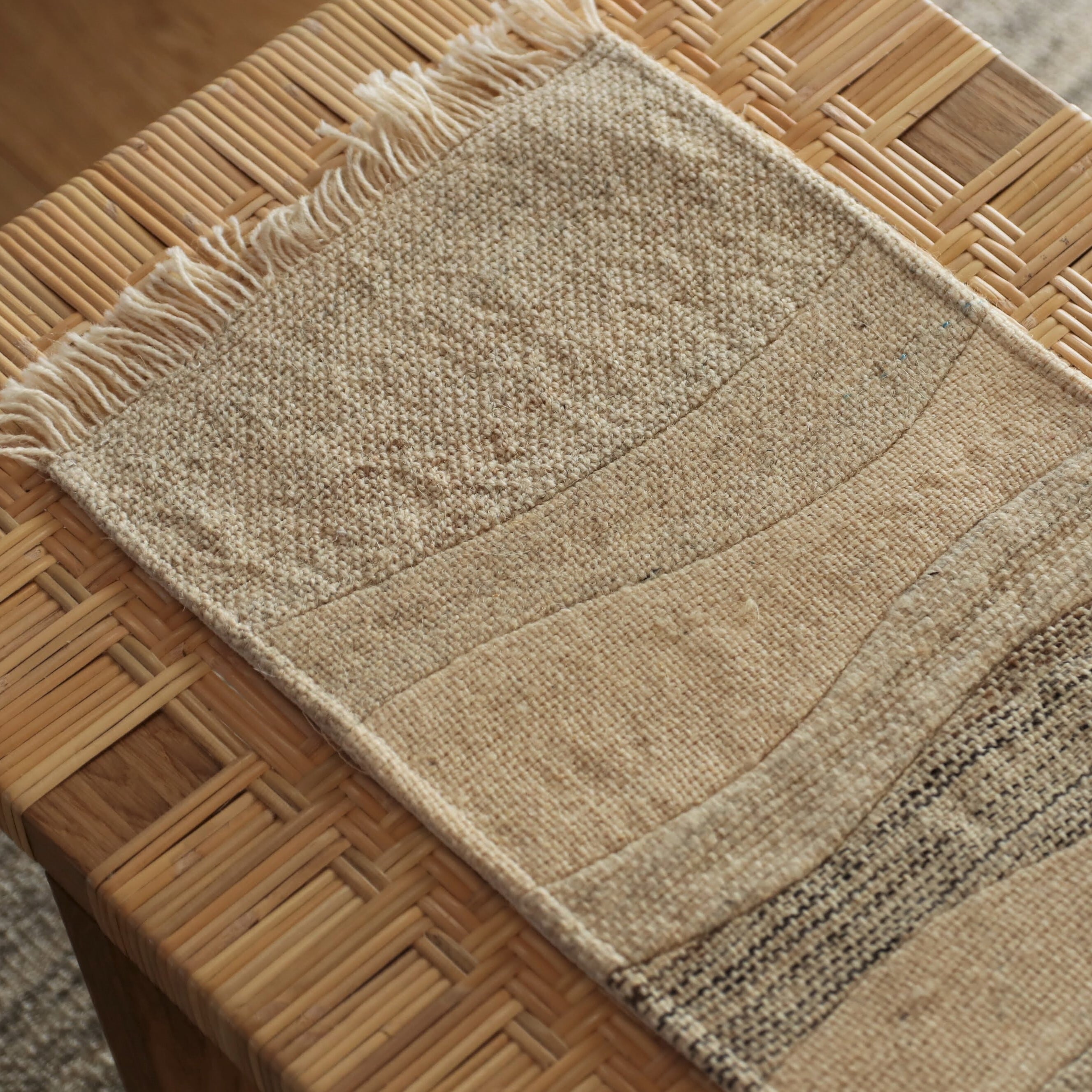 テーブルセンターや、キャビネットやサイドボードの上に敷いて照明を置いたり、インテリアのワンポイントとしてお使いいただけます。一点もののアートとして壁に掛けるタペストリーとしてもおすすめです。