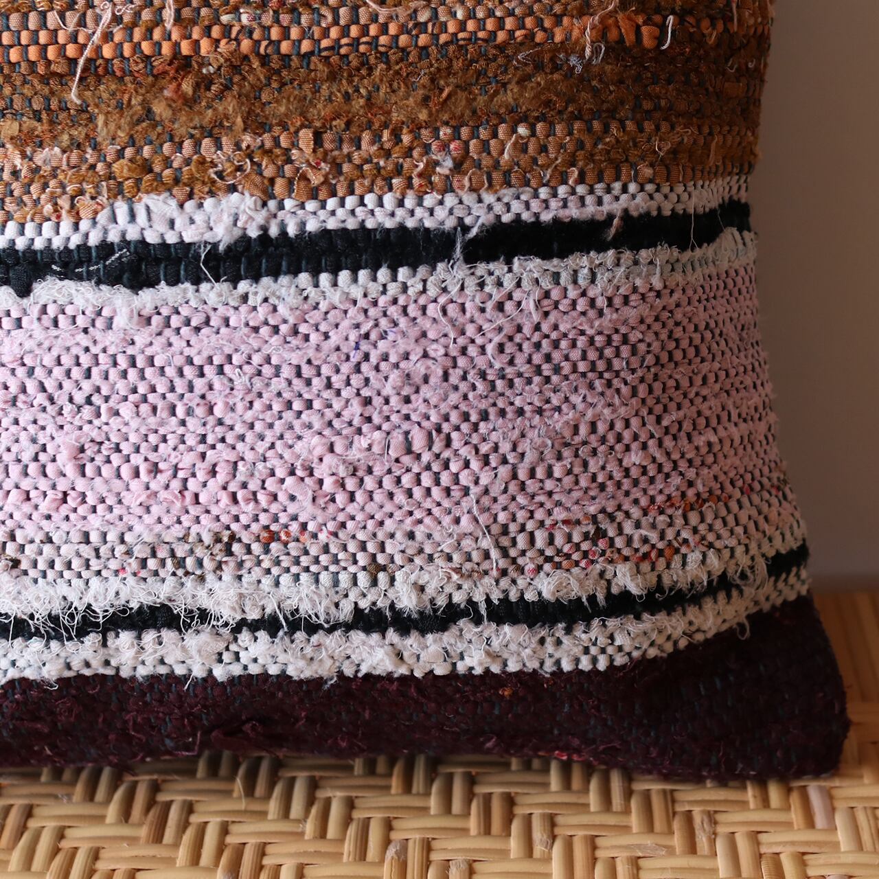 オールドテキスタイルを裂き織り加工して作ったクッションカバーです。
